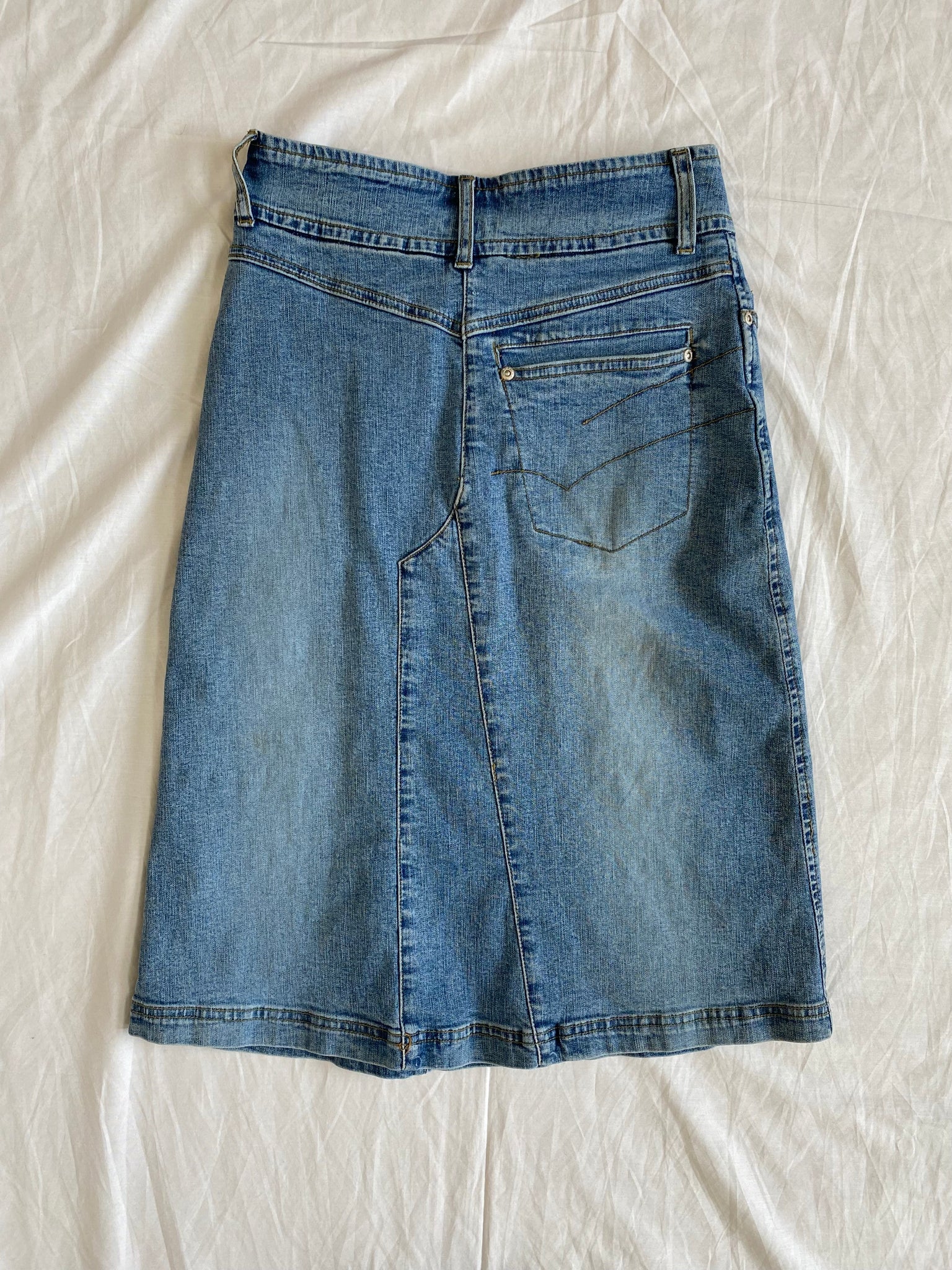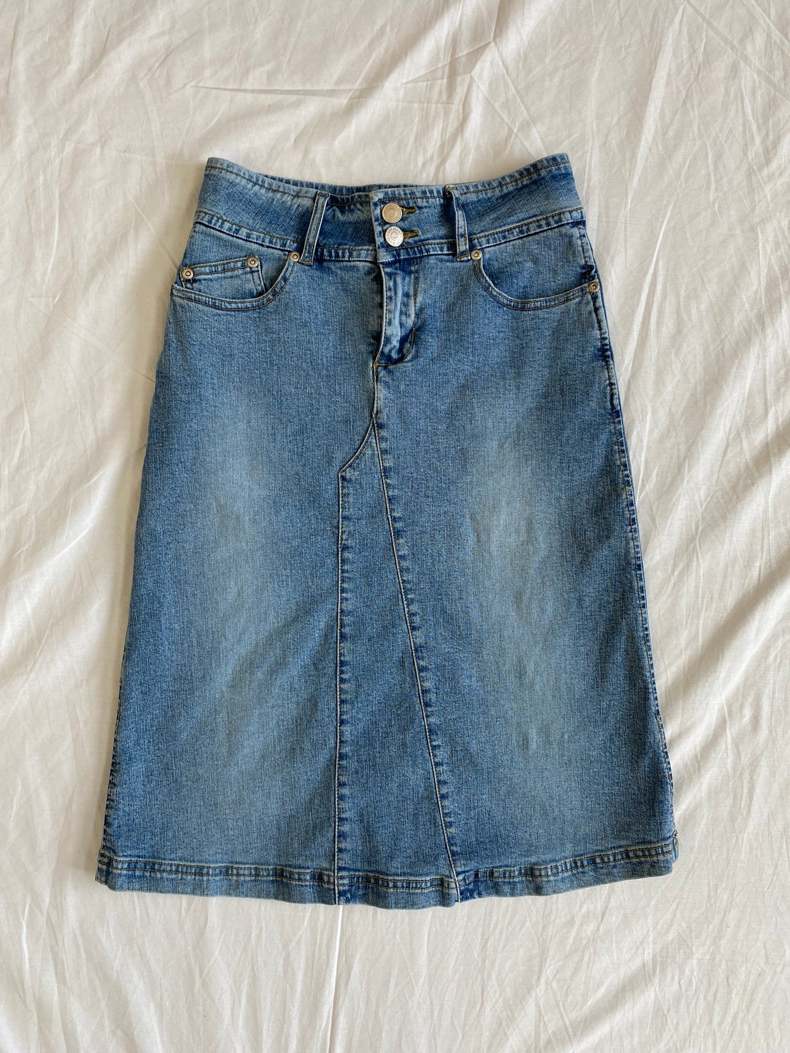 Y2k high-waisted denim midi skirt