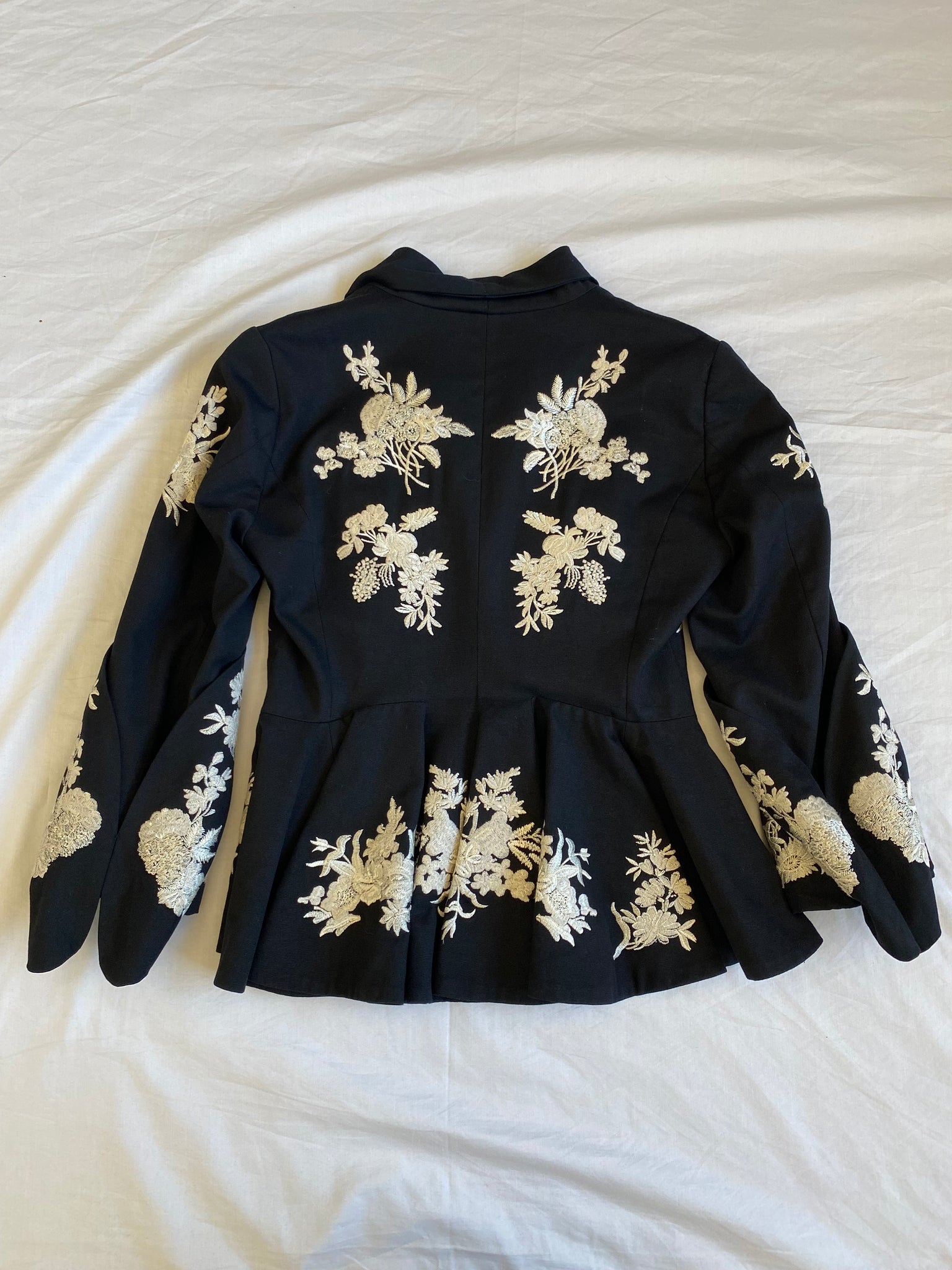 Floral embroidered 3/4 sleeve blazer jacket