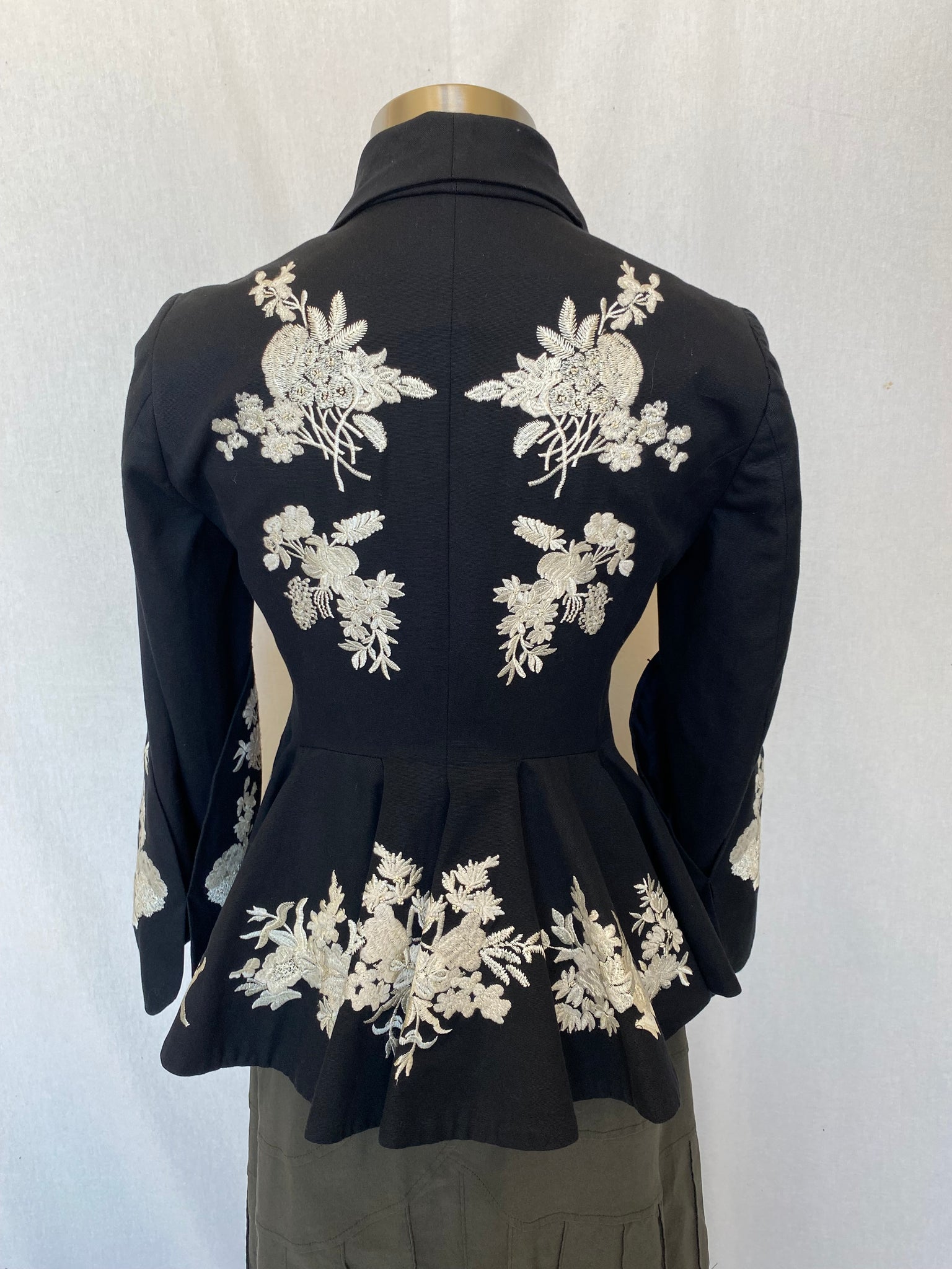 Colour: Black with beige and white embroidery.