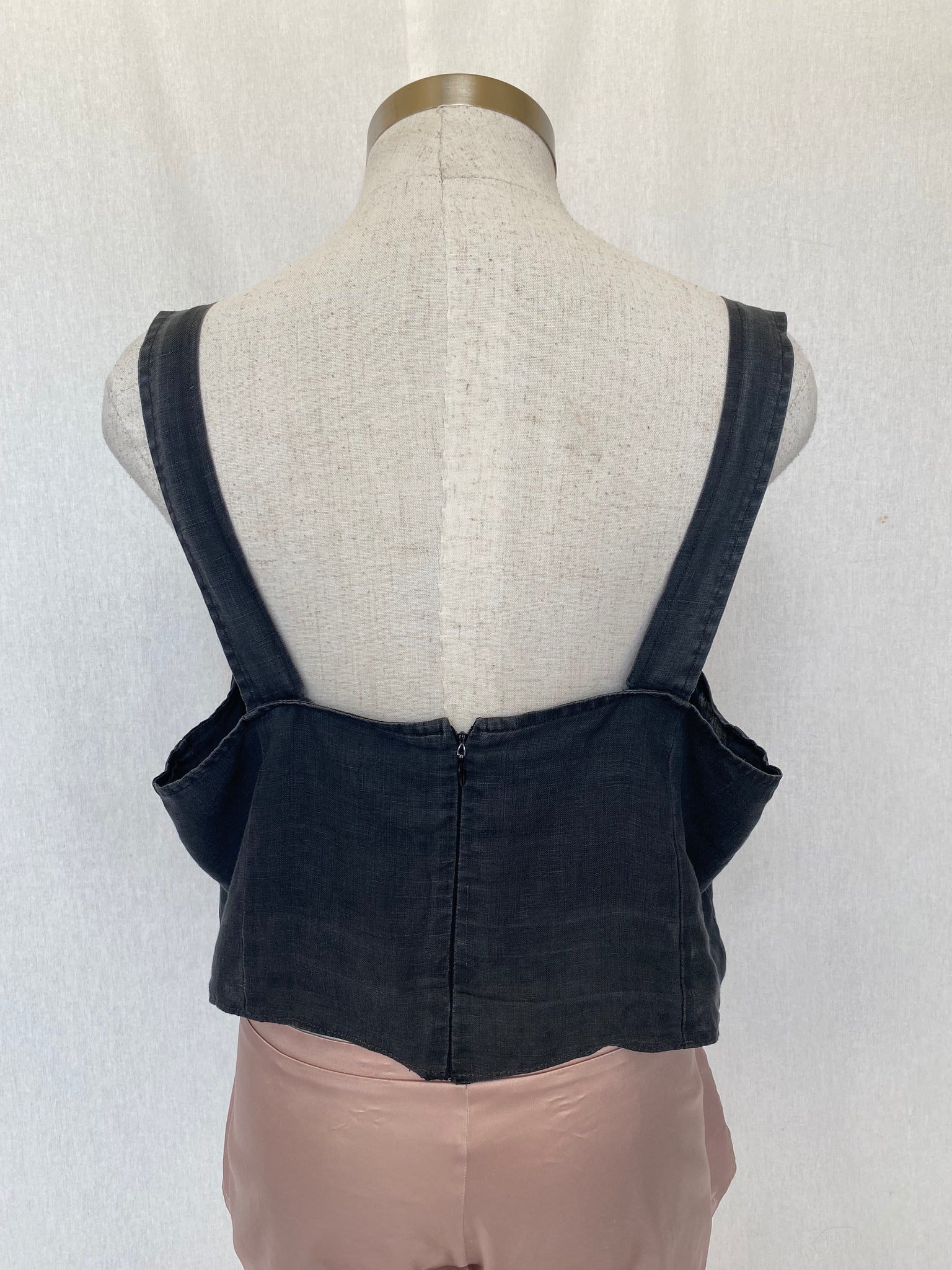 Condition: Has been altered from a longer top into a crop. Some signs of wear on straps.