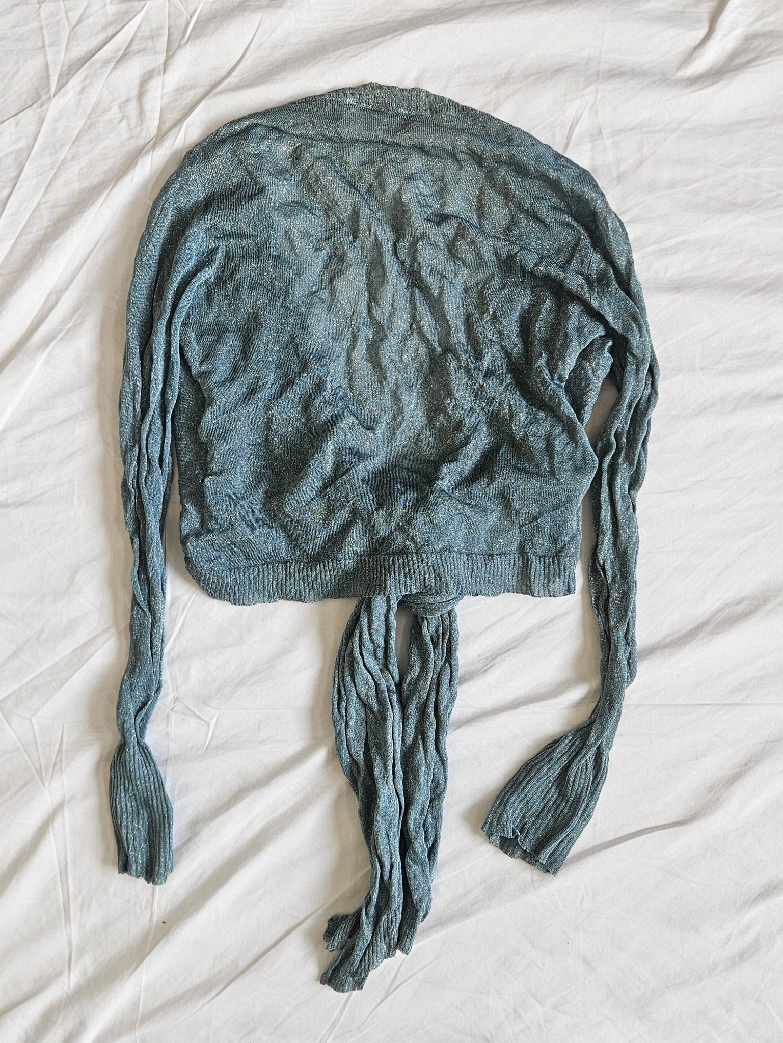 Measurements laying flat: 41cm underarm, 43cm middle back length