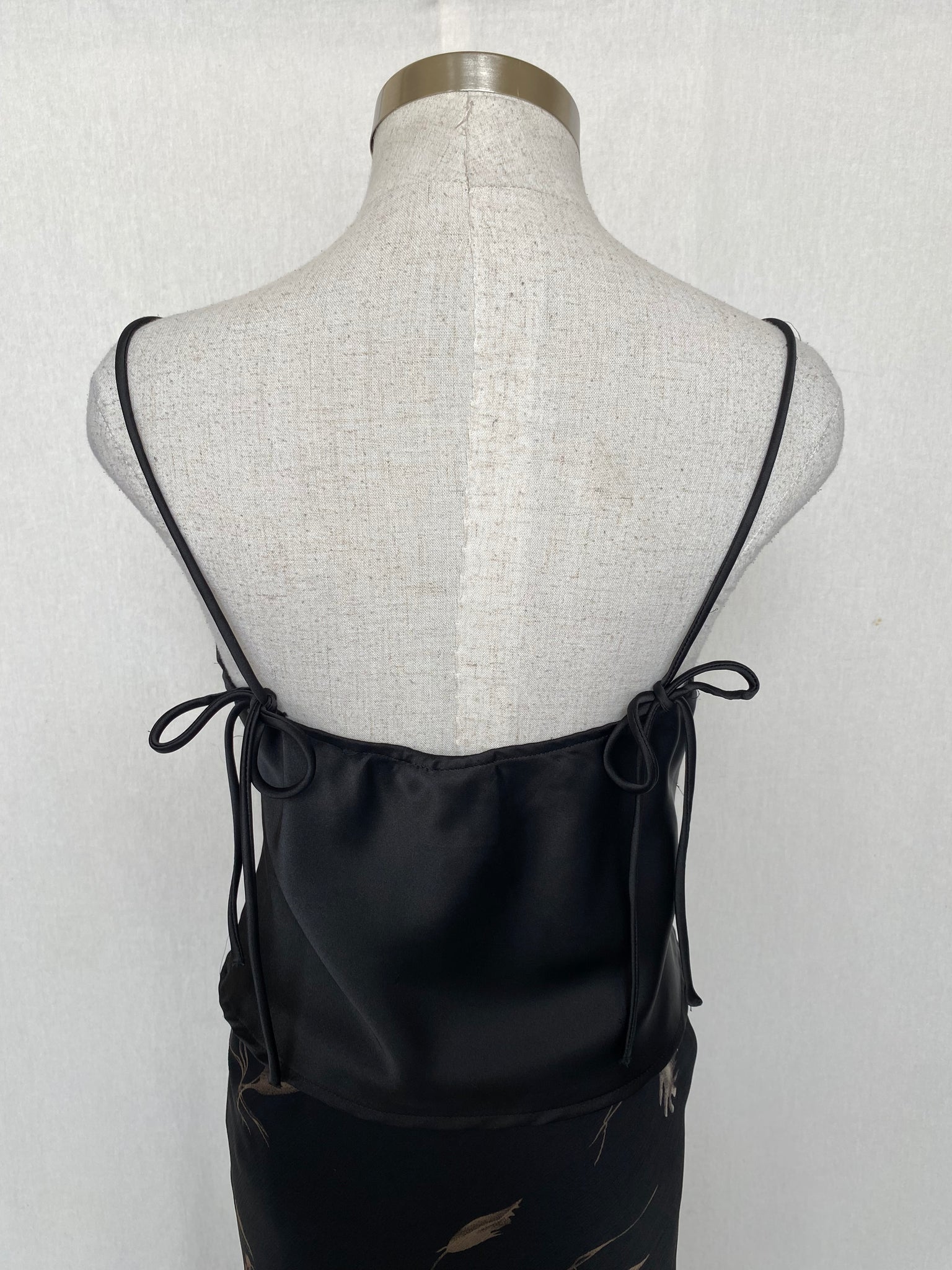 Measurements laying flat: 42cm-48cm underarm, 38cm waist, 43cm hip, 32cm length (excluding straps as they can be tied at any length)